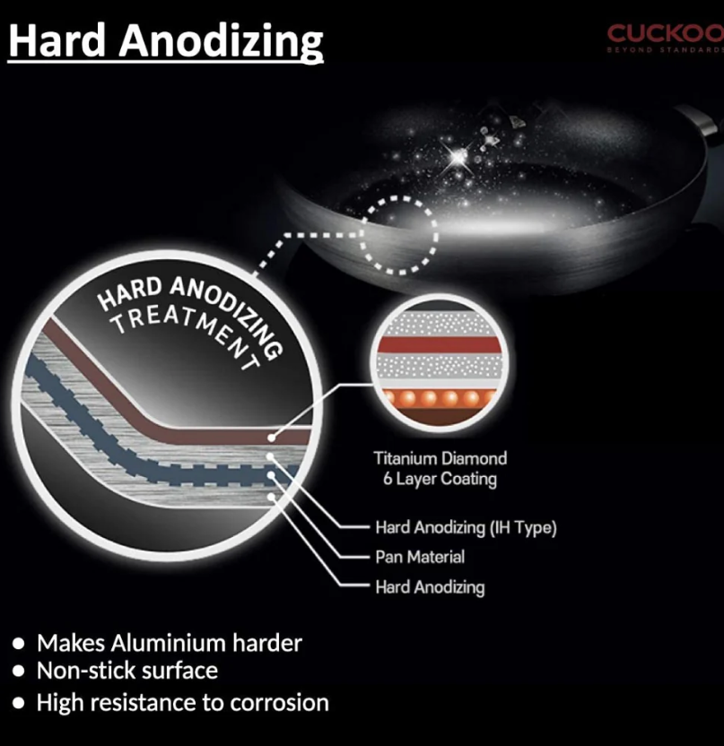 Titanium-Diamond 코팅 + 하드 아노다이즈드 알루미늄 바디로 내구성 & 논스틱성 우수