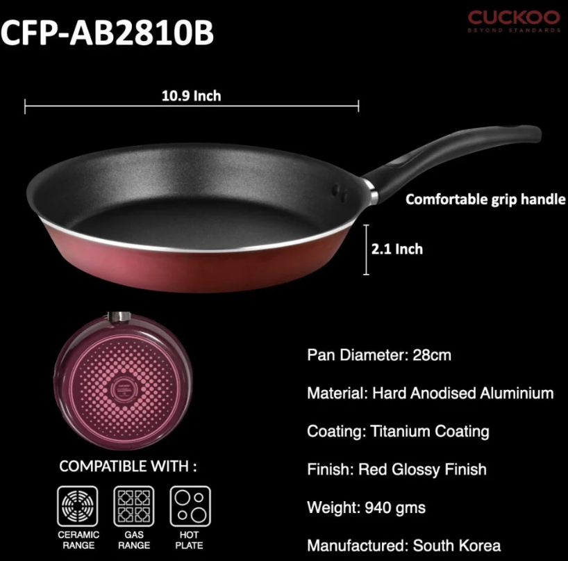 프리미엄 코팅으로 요리를 더욱 즐겁게! 대한민국 장인의 손길로 완성된 Cuckoo CFP-AB2810B 프라이팬을 소개합니다.